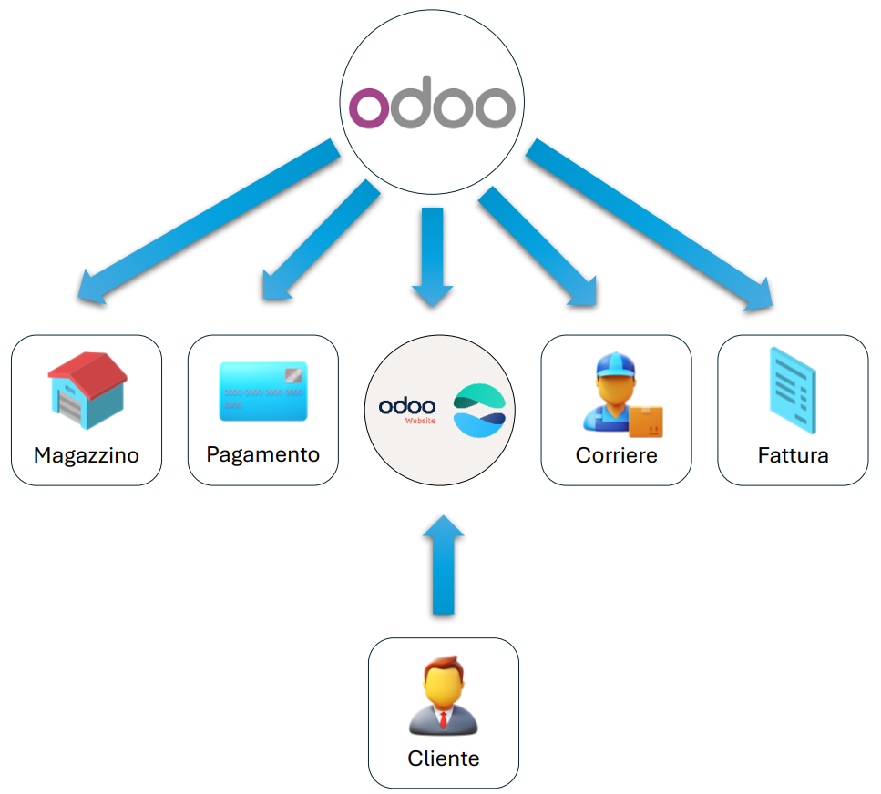 Il portale non si limita alla vendita online, ma integra l’intero processo operativo: gestione del magazzino, pagamenti online (bonifico, PayPal, Stripe e altri sistemi compatibili), prenotazione automatica dei corrieri e informatizzazione completa del flusso di vendita, dall’ordine fino alla fatturazione elettronica.