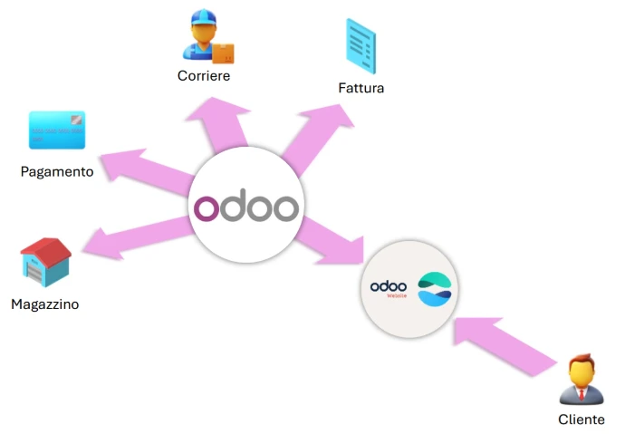 Il portale non si limita alla vendita online, ma integra l’intero processo operativo: gestione del magazzino, pagamenti online (bonifico, PayPal, Stripe e altri sistemi compatibili), prenotazione automatica dei corrieri e informatizzazione completa del flusso di vendita, dall’ordine fino alla fatturazione elettronica.